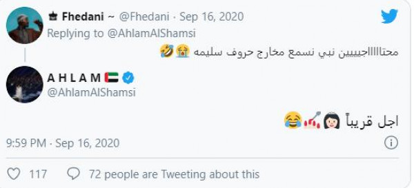 وفسّر رواد السوشيال ميديا بأن الفنانة أحلام تستفز بتغريدتها زميلتها أصالة نصري التي أطلقت ألبومها الجديد مؤخرا، في الوقت الذي تستعد فيه الفنانة الإماراتية الى إطلاق ألبومها الخليجي ايضا خلال الفترة المقبلة بدون أن تحدد موعدأ دقيقاً له، ما سيعزز من اشتعال المنافسة بين الزميلتين على الساحة الفنية في آن معاً.