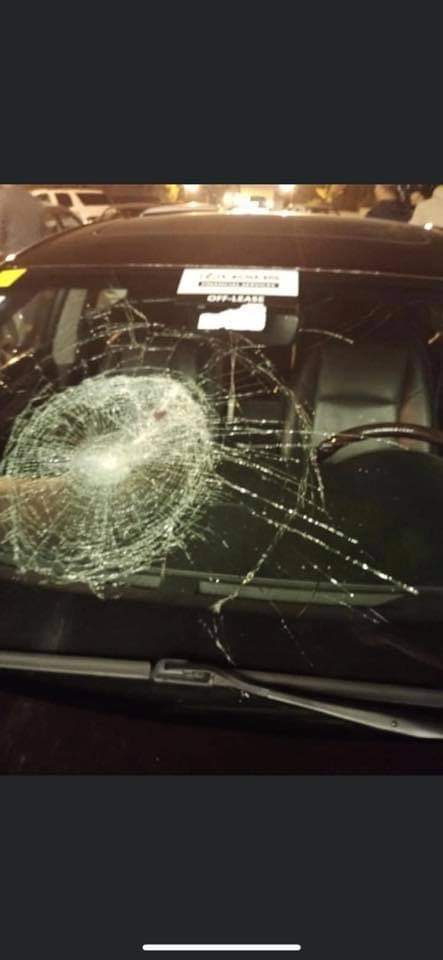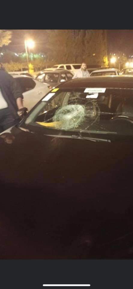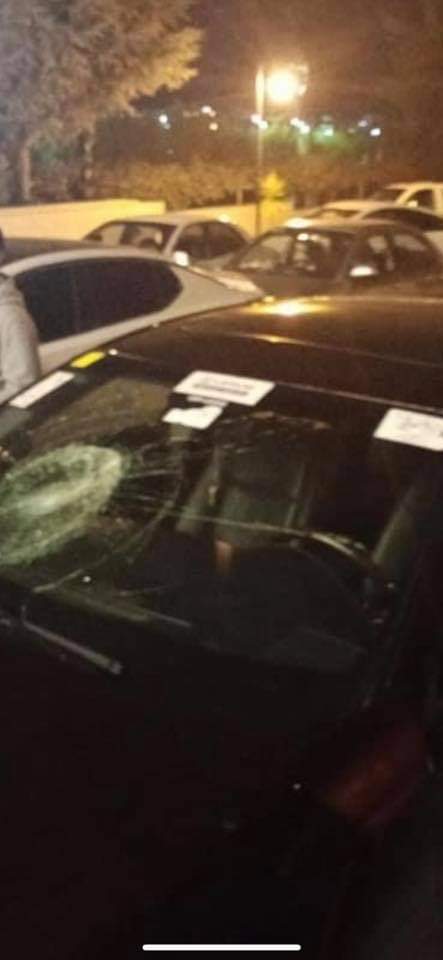وبين ان عدد من الاشخاص قاموا بالاعتداء علي سيارة كانوا بداخلها وتكسير زجاجها.