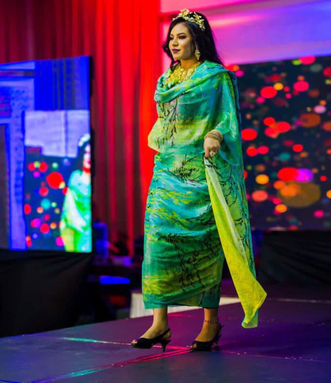 وركزت نرمين على عرض تصاميم للثوب السوداني، إضافة الي الزي التقليدي للرجال (الجلباب الأبيض والعمامة).