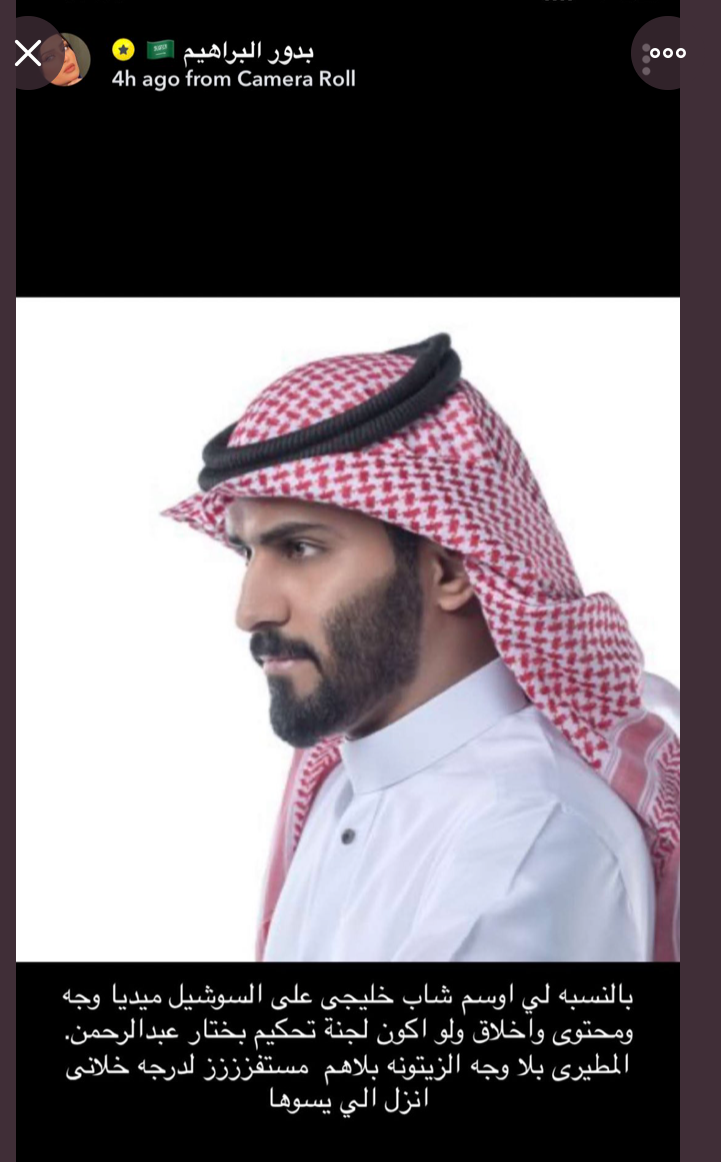 وارفقت البراهيم صورة المطيري بتعليق قالت فيه: "بالنسبة لي أوسم شاب خليجي على السوشال ميديا وجه ومحتوى وأخلاق ولو أكون لجنة تحكيم بختار عبدالرحمن المطيري وبلا وجه الزيتونة بلاهم مستفززززز لدرجة خلاني أنزل الي يسواها".
