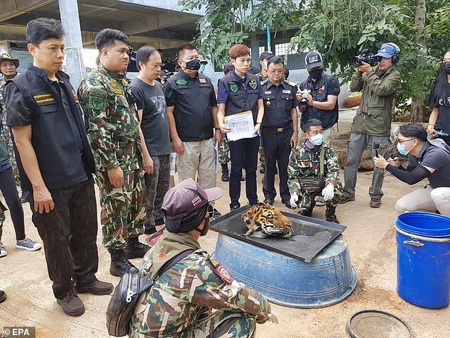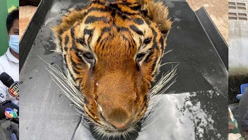 عثرت السلطات التايلاندية على رأس نمر مقطوع بين العديد من جثث الحيوانات الأخرى خلال غارة لتهريب الحياة البرية في حديقة حيوانات خاصة.