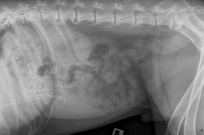 وأخذ العاملون في عيادة PDSA في مارغيت الكلب "دكستر" البالغ من العمر 10 سنوات مباشرة إلى الجراحة الطارئة بعد أن أكدت الأشعة السينية أن هناك شيئًا ما استقر في معدته.