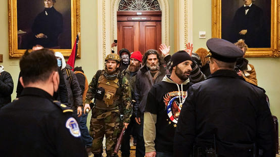 طلبت رئيسة مجلس النواب الأمريكي نانسي بيلوسي، من الحرس الوطني التدخل لإخلاء وتأمين مبنى الكابيتول، إثر اقتحامه من أنصار الرئيس دونالد ترامب الرافضين لفوز جو بايدن.