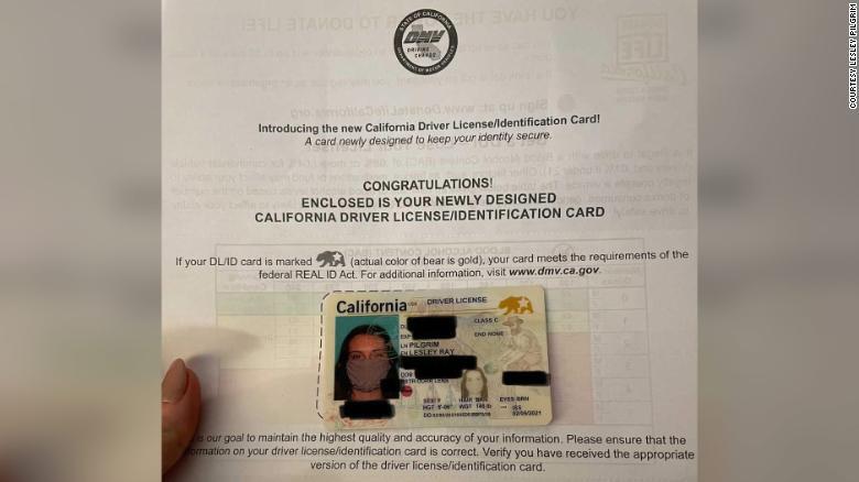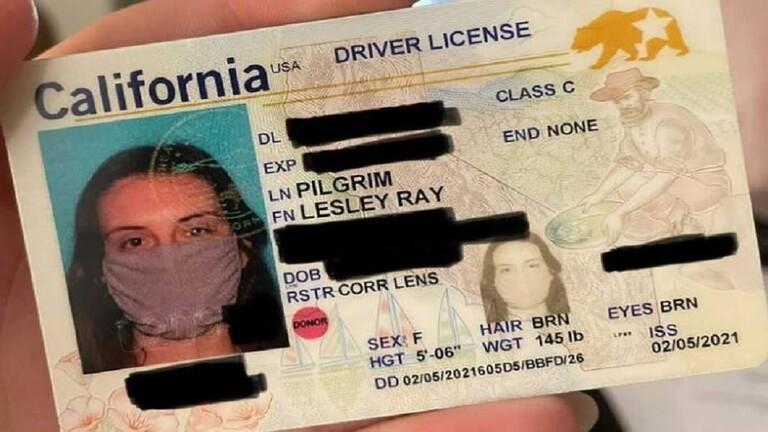 وحصلت ليزلي بيلغريم، البالغة من العمر 25 عاما، على بطاقة هوية من دائرة إدارة المركبات بكاليفورنيا، تظهر صورتها وهي ترتدي القناع الواقي، وهي المرة الأولى التي تحدث في تاريخ البلاد بالكامل.