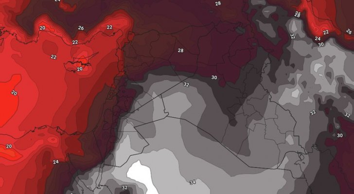 يحدث تراجع على حدة الكتلة الهوائية الحارة عن المملكة يوم الخميس، بحيث تنخفض درجات الحرارة قليلاً مع بقائها أعلى من مُعدلاتها لمثل هذا الوقت من العام، ويكون الطقس حاراً في المرتفعات الجبلية، وشديد الحرارة في الاغوار والعقبة ومناطق البادية، مع ظهور بعض السُحب على ارتفاعات مُتوسطة وعالية خاصة في المناطق الجنوبية والشرقية.