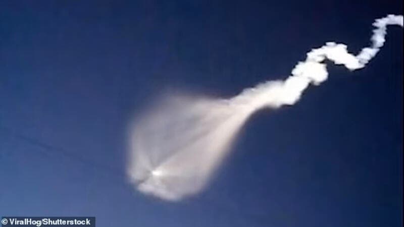 ونجح أهالي المدينة في توثيق المشهد المريب في مقطع فيديو جرى تداوله بكثرة على مواقع التواصل الاجتماعي حيث رجح المغردون بأن ما شاهدوه في السماء هو بقايا صاروخ روسي.