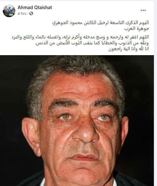ومن ابرز من تذكر الجوهري احمد قطيشات مدير المنتخب الوطني السابق والذي رافق الجوهري سنوات عديدة حيث كتب " اليوم الذكرى التاسعة لرحيل الكابتن محمود الجوهري