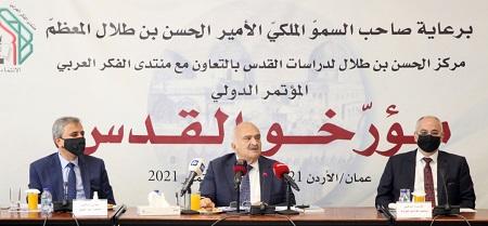 جاء ذلك خلال كلمة لسموه في الجلسة الافتتاحية للمؤتمر الدولي "مؤرّخو القدس"، الذي انطلقت أعماله، اليوم الثلاثاء، بتنظيم من مركز الحسن بن طلال لدراسات القدس لمرحلة ما بعد الدكتوراه، بالتعاون مع منتدى الفكر العربي، بحضور عدد من الشخصيات الدينية الإسلامية والمسيحية.