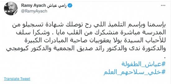 من جهة أخرى، وافقت الفنانة اللبنانية مايا ديب، على قبول تحدي (عياش الطفولة) ضمن مبادرة (تحدي التعلم) الذي أطلقه الفنان رامي عياش، لتخفيف أعباء الأقساط المدرسية عن بعض العائلات اللبنانية.