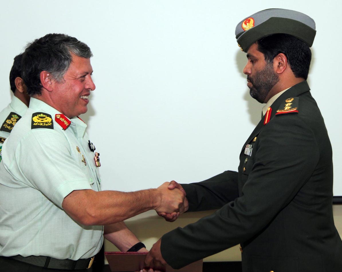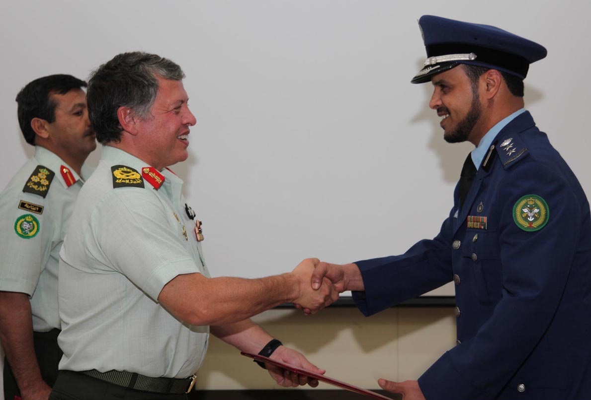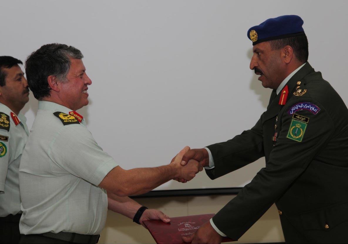 وفي ختام الحفل، وزع جلالة القائد الاعلى، الشهادات على خريجي الدورتين اللتين ضمتا عددا من المشاركين من ضباط الدول الشقيقة والصديقة، من كل من السعودية، والكويت، والامارات العربية المتحدة، ومملكة البحرين، والجزائر، وسلطنة عمان، والسودان، ولبنان، ومصر، وباكستان، والمانيا، وتايوان، كما شارك بالدورتين عدد من ضباط القوات المسلحة والاجهزة الامنية وموظفين من عدد من وزارات ومؤسسات الدولة المختلفة.