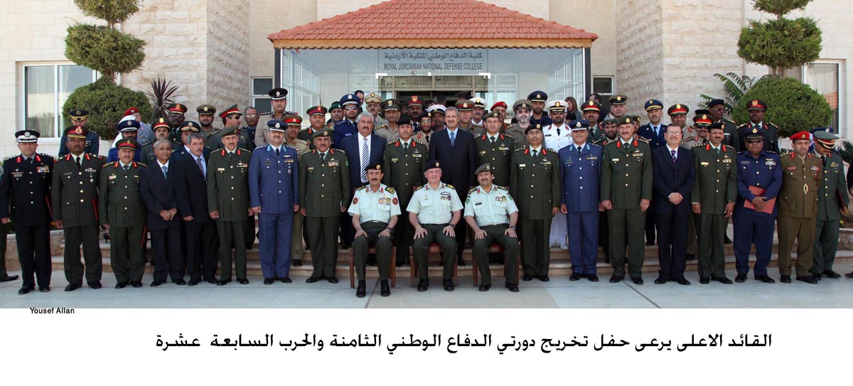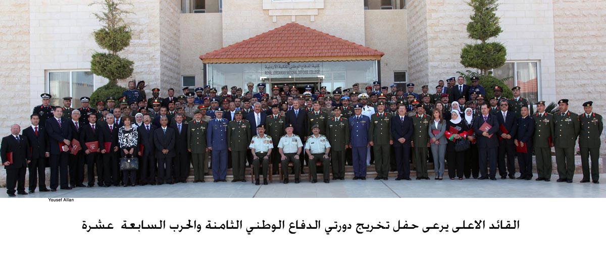 رعى جلالة الملك عبدالله الثاني القائد الاعلى للقوات المسلحة في كلية الدفاع الوطني الملكية الاردنية اليوم حفل تخريج دورتي الدفاع الوطني الثامنة والحرب السابعة عشرة.