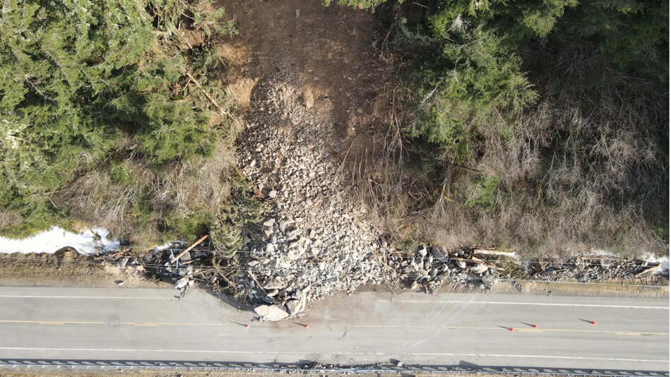 وتم إغلاق الطريق، بعدما صرحت وزارة النقل في ألاسكا بأن الانهيار الصخري الثاني بدأ على ارتفاع 500 قدم (152.5 متر) في طريق دوغلاس السريع، وليس من الواضح متى سيكون جاهزًا لإعادة فتحه.