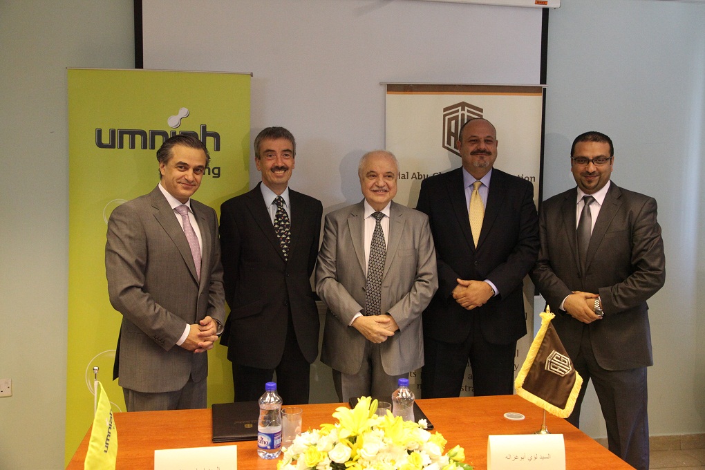 ووقع الاتفاقية التي تُعتبر أمنية بموجبها مزود خدمات الاتصالات الحصري لمجتمع طلال أبوغزاله للمعرفة، كل من السيد إيهاب حناوي، الرئيس التنفيذي لشركة أمنية، السيد لؤي أبوغزاله ، نائب رئيس مجلس إدارة مجموعة طلال أبوغزاله، بحضور سعادة الدكتور طلال أبوغزاله و السفير البريطاني وممثلي وسائل الإعلام المحلية. وقد شهد حفل التوقيع، تخريج دفعة جديدة من طلاب وطالبات صندوق الأمان للأيتام من المشاركين في برنامج المهارات الأساسية، الذي يهدف لتأهليهم للالتحاق بسوق العمل، كما تم توزيع الشهادات التقديرية عليهم.