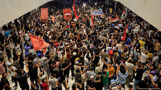 تظاهر أنصار التيار الصدري في ساحة التحرير ، صباح السبت ، احتجاجا على جلسة محتملة للبرلمان لانتخاب الرئيس ورئيس الوزراء.
