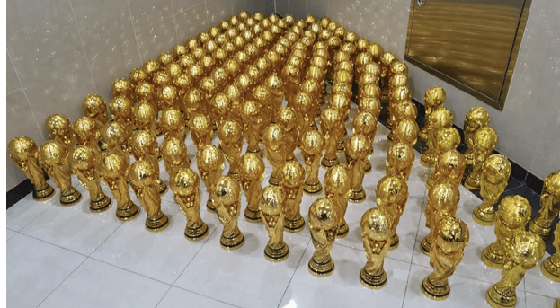وقالت الداخلية القطرية، عبر حسابها على تويتر: "تمكنت إدارة مكافحة الجرائم الاقتصادية والإلكترونية بالإدارة العامة للمباحث الجنائية بالتعاون مع لجنة حماية الملكية الفكرية، من ضبط 144 كأسا مقلدا يماثل كأس بطولة العالم FIFA قطر 2022، في مخالفة لقانون رقم 10 لسنة 2021 فيما يخص تدابير استضافة كأس العالم فيفا".