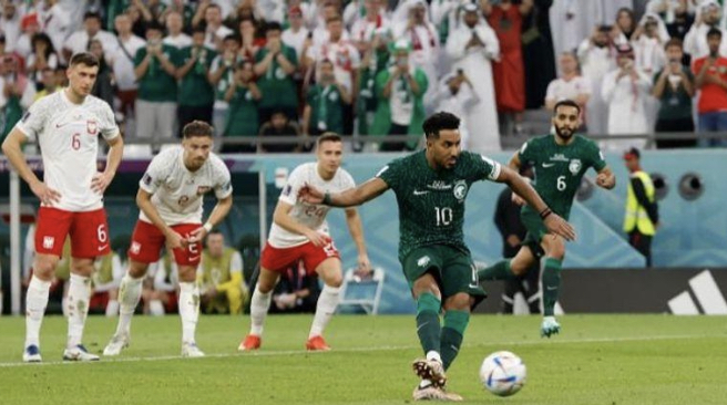 وأهدر سالم الدوسري ركلة جزاء مستحقة لصالح السعودية أمام بولندا في الدقيقة 45.