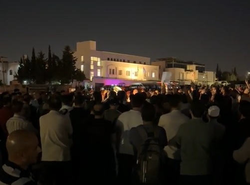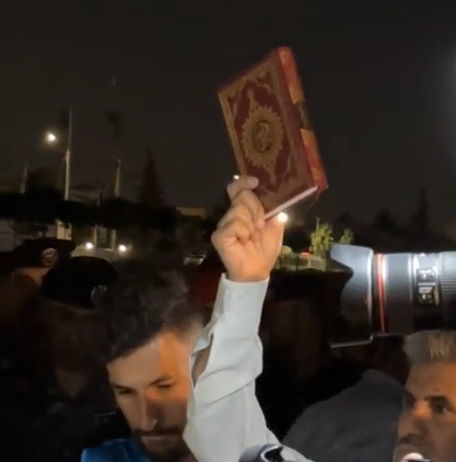 احتشد مئات الأردنيين، مساء الثلاثاء، أمام سفارة دولة السويد بمنطقة عبدون غربي العاصمة عمان، وذلك احتجاجا بسماح الحكومة السويدية بحرق المصحف الشريف.