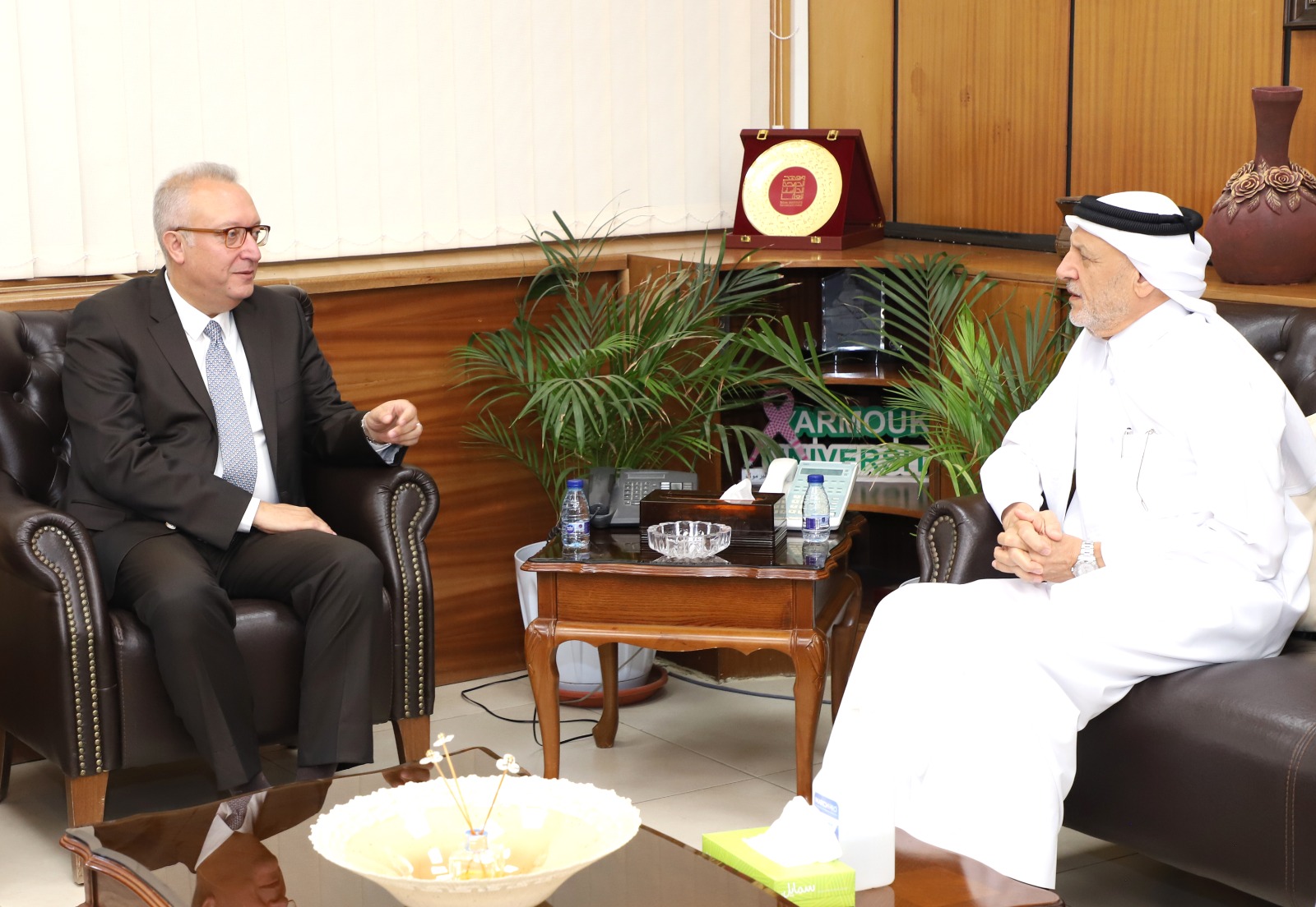 استقبل رئيس جامعة اليرموك الدكتور إسلام مّساد وفدا من وزارة التربية والتعليم والتعليم العالي القطرية ضم كلاً من الوكيل المساعد لشؤون التعليم العالي في الوزارة الدكتور خالد عبدالله العلي، ومدير إدارة شؤون مؤسسات التعليم العالي الدكتور عبدالله حمد فطيس، والملحق الثقافي في سفارة دولة قطر في الأردن حمد بن عبدالله الشريف، والدكتور علاء الدين طواها من الملحقية الثقافية القطرية في عمان.
