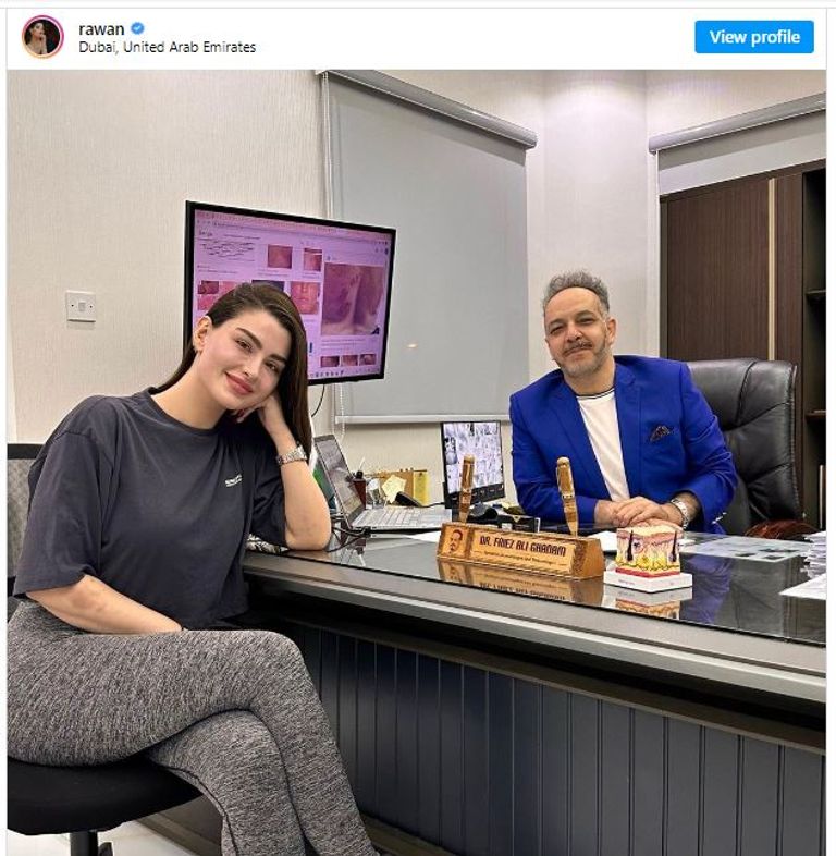 وشاركت روان بن حسين صورة مع طبيبها المعالج، ونشرتها عبر حسابها على "إنستغرام"، مع تعليق: "أعاني منذ 4 أشهر من حساسية تشبه الحروق".