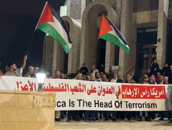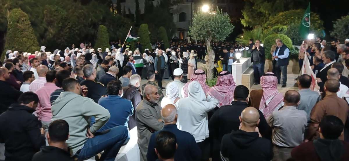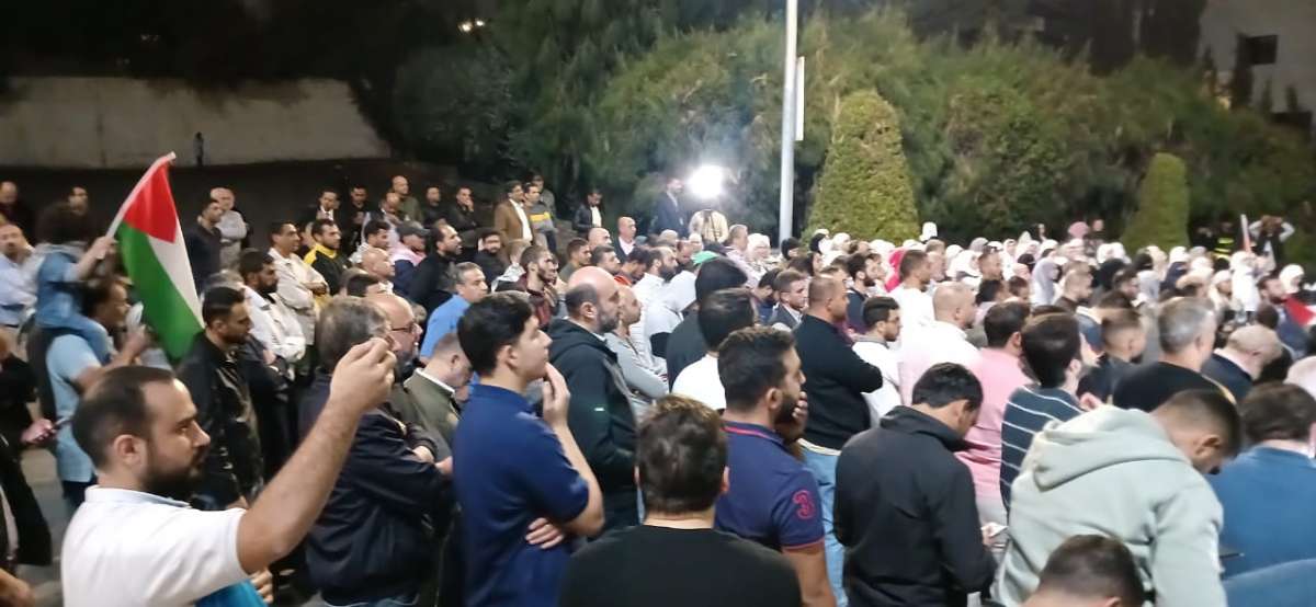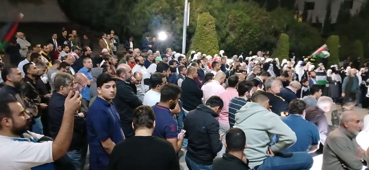 شارك مواطنون في الاعتصام الذي أقيم بعد صلاة العشاء، الأحد، أمام مسجد السيدة عائشة رضي الله عنها قرب السفارة الأمريكية في العاصمة عمان، وذلك تنديدا بالموقف الأمريكي الداعم والمشارك في العدوان الوحشي على الأهل في قطاع غزة.