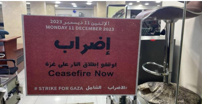 تنفذ قطاعات خاصة في الأردن، اليوم الإثنين إضرابا عن العمل، عقب دعوة نشطاء عبر مواقع التواصل الاجتماعي لاضراب عالمي، نصرة لأهالي غزة وتنديدا بجرائم الاحتلال الإسرائيلي بحق المدنيين ودعماً للموقف الأردني الرسمي.
