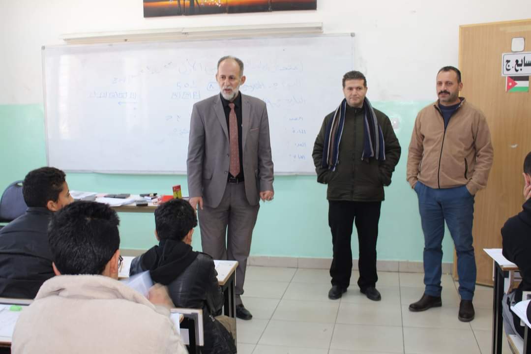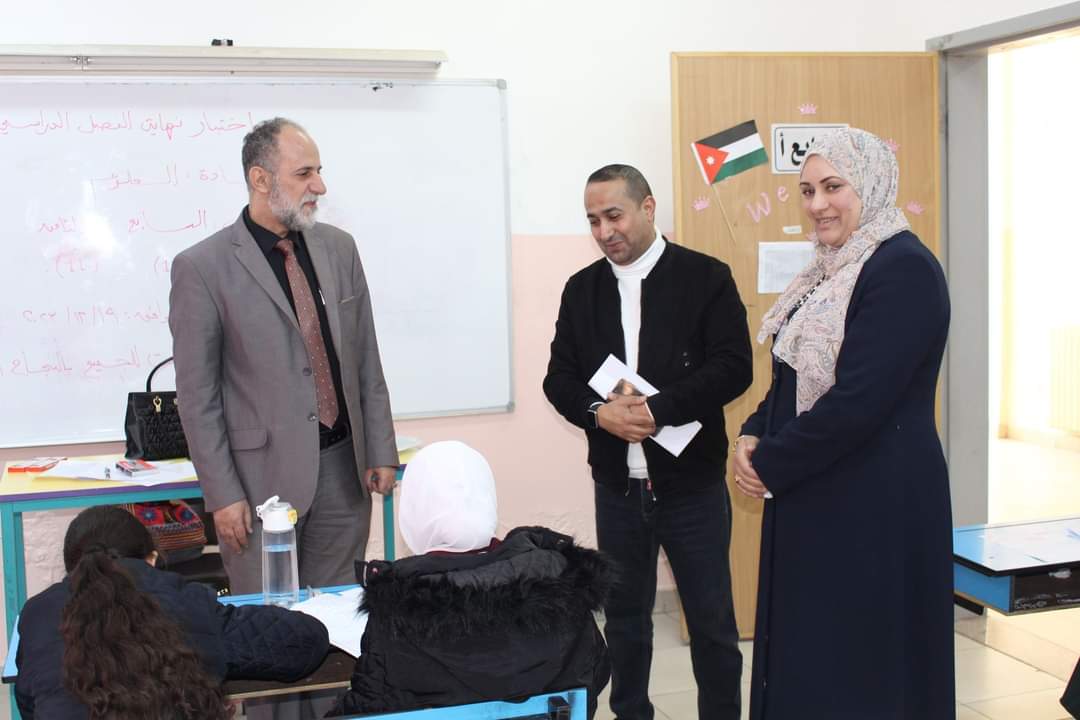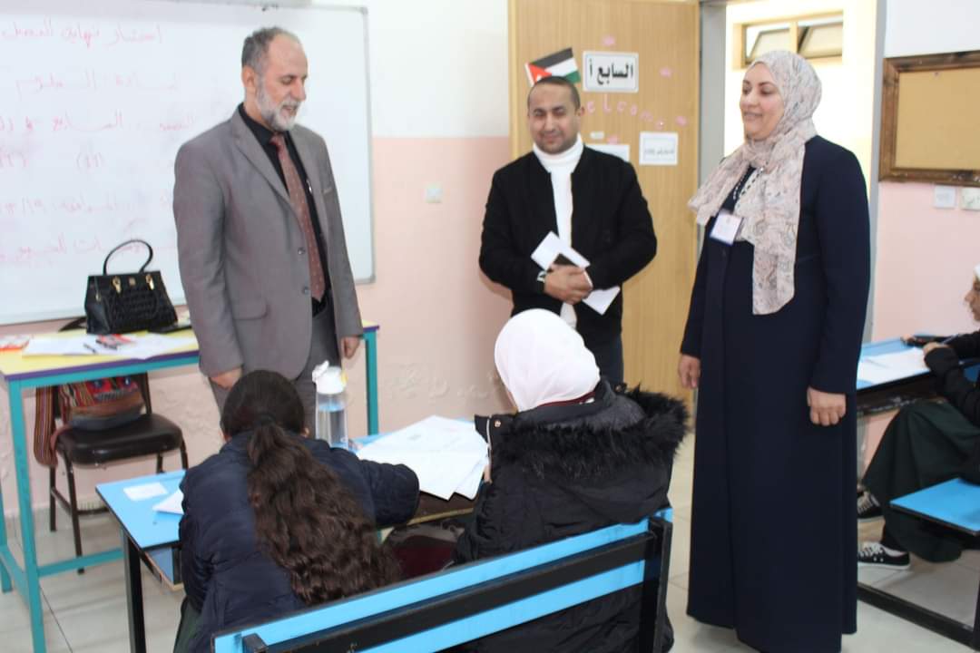 و قام المومني والفريق الزائر بجولة تفقدية للقاعات والغرف الصفية واطلع على سير الامتحان طبقا لمجموعة من المعايير والضوابط التي يتم تطبيقها. حيث أبدى الفريق إعجابه فيما شاهدوا من تنظيم وإتقان وأثنوا على جهود الكادر المدرسي بقيادة مديرة المدرسة إيمان عبد الجواد.