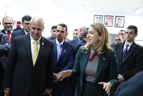 في إطار تعزيز العلاقات الثنائية والتعاون الأكاديمي بين الأردن والولايات المتحدة الأمريكية، زارت السفيرة الأمريكية لدى المملكة، يائل لمبرت، جامعة الطفيلة التقنية اليوم، حيث التقت رئيس الجامعة الأستاذ الدكتور بسّام زعل المحاسنة بحضور نائب الرئيس الأستاذ الدكتور كمال الخندقجي، والأساتذة عمداء الكليات، وعددًا من أعضاء الهيئة التدريسية ممن تلقوا تعليمهم العالي في الجامعات الأمريكية.