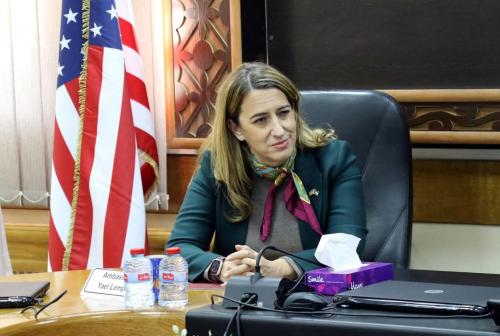 وخلال الزيارة، ناقشت السفيرة سبل تعزيز التعاون في مجالات التعليم العالي، وتبادل الخبرات البحثية، ودعم البرامج الأكاديمية التي تعزز الابتكار والتطوير. كما تطرقت المباحثات إلى إمكانية توسيع برامج التبادل الطلابي بين الجامعات الأمريكية وجامعة الطفيلة التقنية، بما يسهم في تبادل الثقافات وتنمية القدرات الأكاديمية لدى الطلبة.