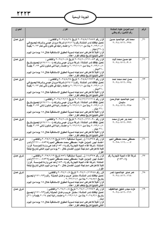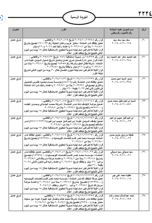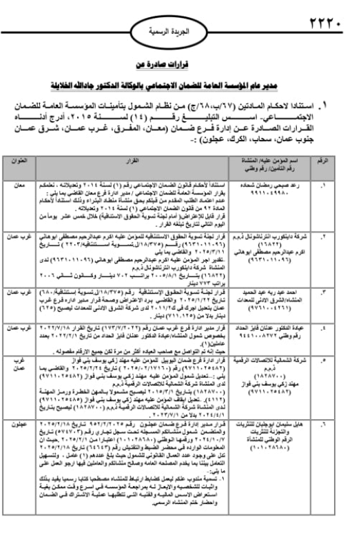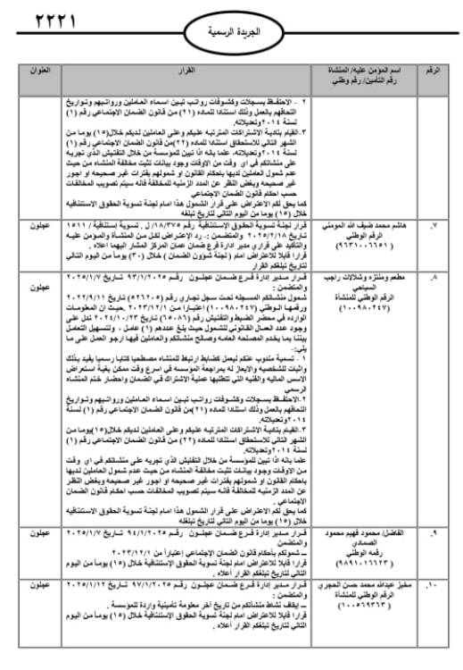 نُشر في عدد الجريدة الرسمية، الأربعاء، قرارات صادرة عن مدير عام المؤسسة العامة للضمان الاجتماعي.
