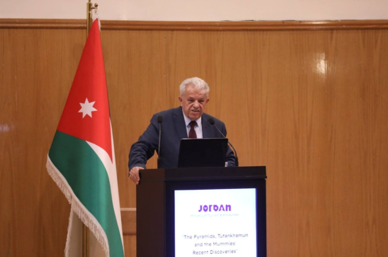 نظمت وزارة السياحة والآثار مساء أمس السبت، محاضرة علمية لعالم الآثار المصري الدكتور زاهي حواس في جامعة كولومبيا الأميركية في عمّان بعنوان: "الأهرامات وتوت عنخ آمون: الاكتشافات الحديثة".