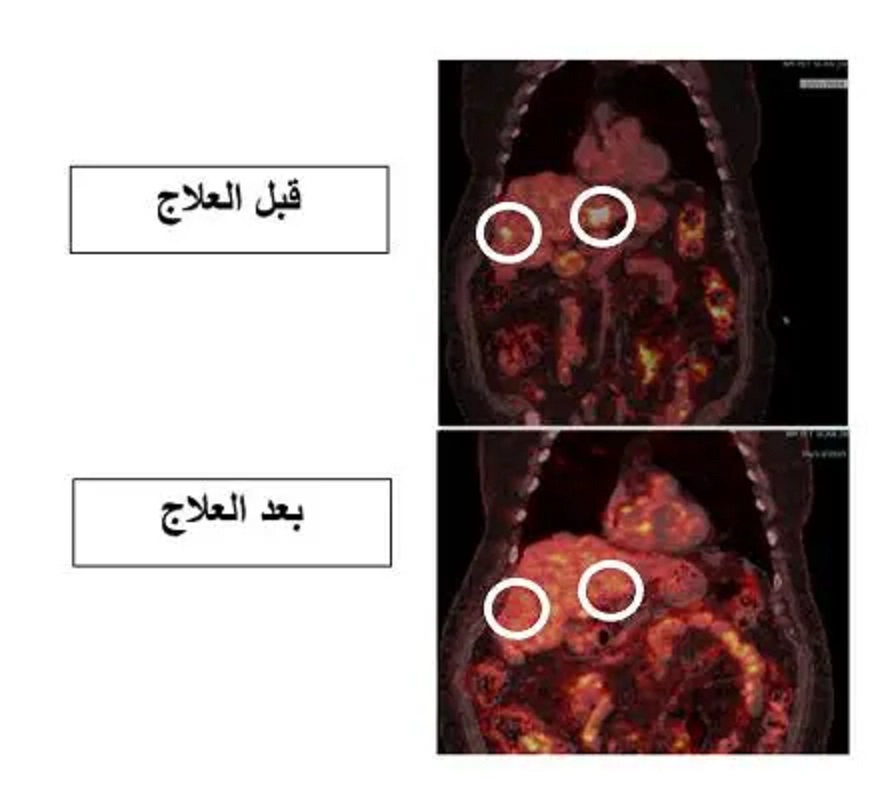 وجاءت النتائج مذهلة؛ إذ أظهرت الفحوصات بعد ثلاثة أشهر من انتهاء العلاج اختفاءً كاملاً لكافة الانتشارات الكبدية، دون ظهور بؤر سرطانية جديدة، وبتحقيق استجابة تامة للعلاج، دون الحاجة لأي تدخل جراحي.
