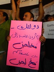 بدعوة من ابناء الحراك الشبابي الاردني الاسلامي ، وبمشاركة من قوى 24 آذار واليساريين ، ينفذ الآن المئات اعتصاما على دوار الداخلية ( ميدان جمال عبدالناصر) احتجاجا على رفع اسعار المشتقات النفطية .