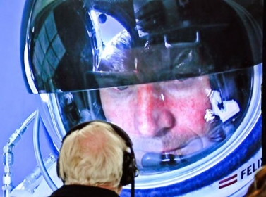 نجح المغامر النمساوي فيليكس بومغارتنر في الوصول إلى الأرض بسلام من قفزته التاريخية من حافة الفضاء (38 الف كيلو مترا).