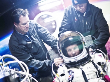 وارتدي بومغارتنر بدلة خاصة لهذه المهمة الخطيرة، التي كسر فيها حاجز الصوت بجسده وهو ما يحدث لأول مرة في التاريخ.