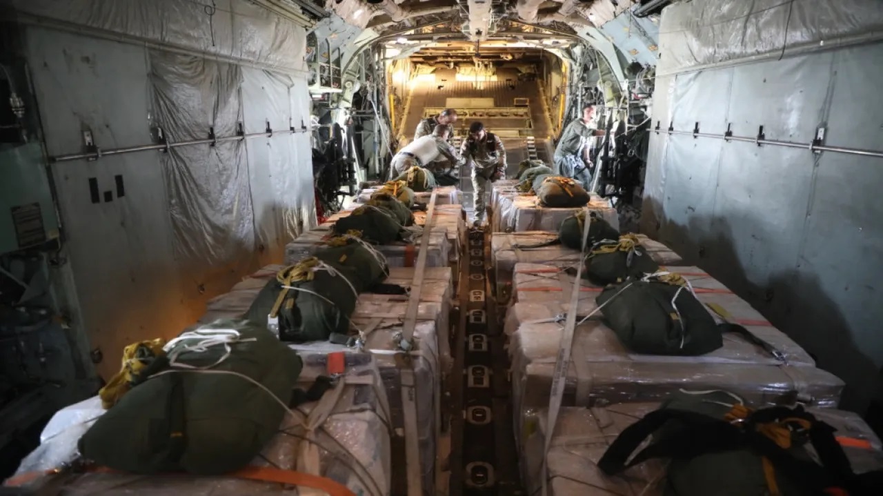 نفذت القوات المسلحة الأردنية، الاثنين، عملية إنزال جوي إلى قطاع غزة، شاركت في العملية بالإضافة إلى طائرات سلاح الجو الملكي الأردني، طائرات من كل من جمهورية ألمانيا الاتحادية ودولة الإمارات العربية المتحدة ومملكة بلجيكا وجمهورية فرنسا وجمهورية إيطاليا ومملكة هولندا وجمهورية سنغافورا وجمهورية...