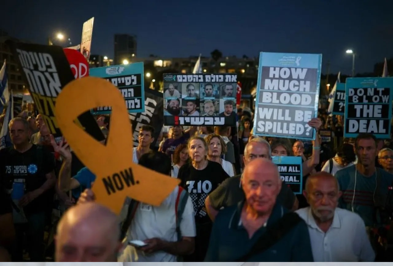 تتواصل احتجاجات عشرات آلاف الإسرائيليين ضد رئيس الوزراء بنيامين نتنياهو، بسبب رفضه الموافقة على اتفاق وقف إطلاق النار وإنهاء الحرب على غزة.ونقلت صحيفة تايمز أوف إسرائيل الإسرائيلية تصريحات ذوي الأسرى الذين ندّدوا بسياسات نتنياهو خلال مظاهرة حاشدة قبل يومين.وأكد مراسلو الصحيفة -تشارلي سمرز ونوم...