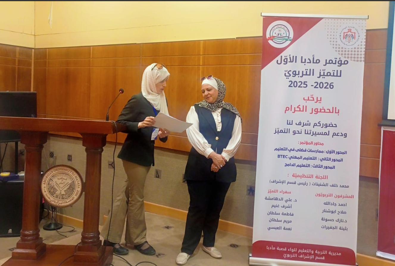 شاركت أقسام الاعلام في وزارة التربية والتعليم من مديريات التربية والتعليم للواء ناعور الدكتورة سميرة العفيشات ولواء سحاب الدكتورة مريم ابوزيد في مؤتمر مأدبا الأول للتميز التربوي بعرض ورقة بحثية بـ عنوان : دور وسائل الاعلام في تعزيز الاتجاهات الايجابية نحو التعليم المهني التقني BTEC .بهدف التعرف...