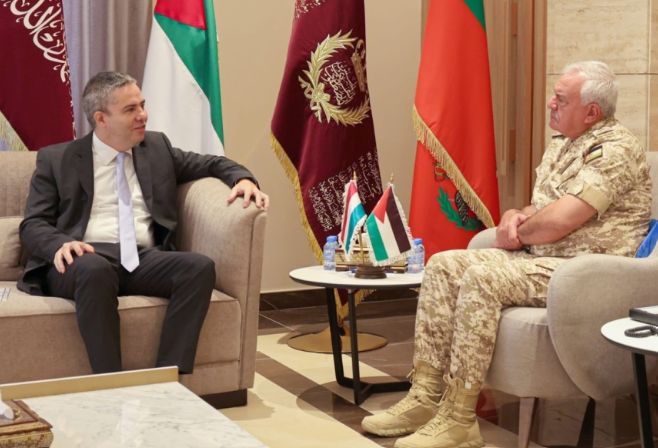 استقبل رئيس هيئة الأركان المشتركة اللواء الركن يوسف أحمد الحنيطي، اليوم الخميس، سفير جمهورية هنغاريا في عمان، اتيلا كالي.وبحث اللواء الركن الحنيطي مع السفير، بحضور عدد من كبار ضباط القوات المسلحة الأردنية – الجيش العربي، أوجه التعاون والتنسيق العسكري بين القوات المسلحة ونظيرتها الهنغارية وسبل...