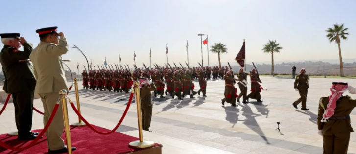 استقبل رئيس هيئة الأركان المشتركة اللواء الركن يوسف الحنيطي، اليوم الأحد، في مكتبه بالقيادة العامة، رئيس أركان القوات البرية الباكستانية المشير عاصم منير، والوفد المرافق.وجرت للضيف مراسم استقبال عسكرية، حيث استعرض حرس الشرف الذي اصطف لتحيته.وبحث اللواء الركن الحنيطي مع الضيف، أوجه التعاون...