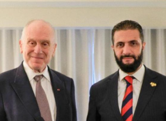 استقبل الرئيس السوري أحمد الشرع، اليوم، رئيس الكونغرس اليهودي العالمي رونالد لاودر، في مقر البعثة السورية لدى الأمم المتحدة في نيويورك، وذلك على هامش أعمال الدورة الثمانين للجمعية العامة للأمم المتحدة.وتناول اللقاء ملف المفاوضات السورية الإسرائيلية، حيث جرى تبادل وجهات النظر حول سبل استئناف...