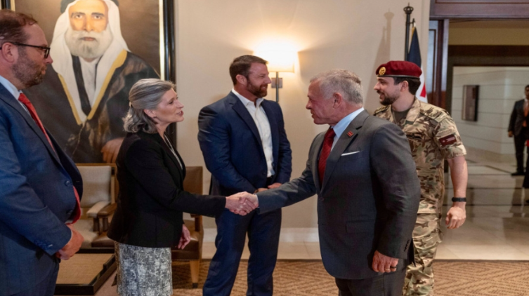استقبل جلالة الملك عبدالله الثاني، بحضور سمو الأمير الحسين بن عبدالله الثاني ولي العهد، في قصر الحسينية، وفدا من الكونغرس الأمريكي يضم عضوي مجلس الشيوخ السيناتور ماركواين مولين، والسيناتور جوني إرنست، وعضوي مجلس النواب جايسون سميث وجيمي بانيتا.