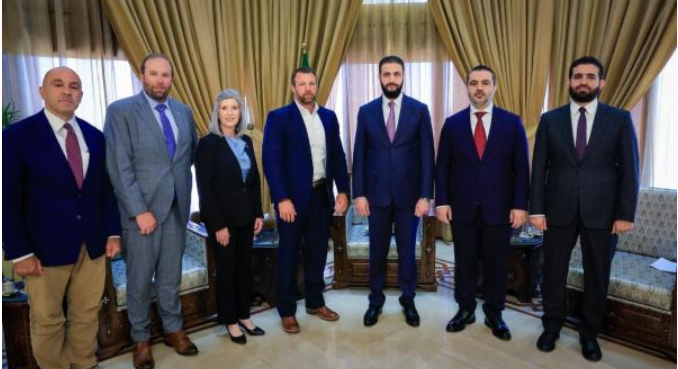 استقبل الرئيس السوري أحمد الشرع في دمشق وفداً من أعضاء مجلسي النواب والشيوخ الأمريكيين بحضور وزير الخارجية والمغتربين أسعد الشيباني ووزير الداخلية أنس خطاب.