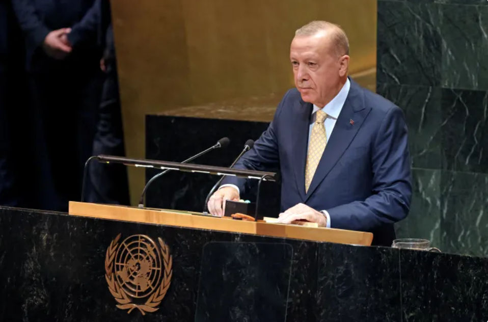 اعرب الرئيس التركي رجب طيب أردوغان خلال كلمته أمام الدورة الـ80 للجمعية العامة للأمم المتحدة اليوم الثلاثاء عن أسفه لغياب رئيس دولة فلسطين محمود عباس، رغم أن أعدادا متزايدة من الدول تعترف بدولة فلسطين.ووجه أردوغان الشكر لكل الدول التي أعلنت اعترافها بدولة فلسطين، داعيا كل الدول الأخرى التي لم...