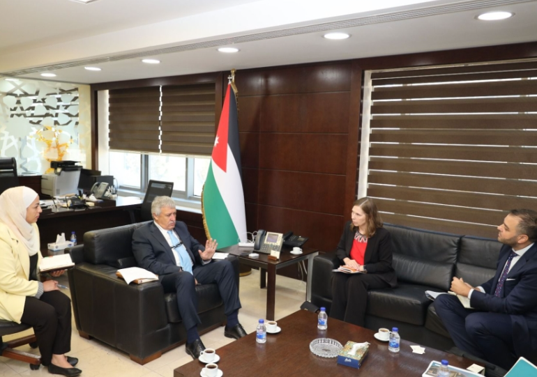 استقبل وزير النقل الدكتور نضال القطامين اليوم في مكتبه السفير الامريكي لدى الاردن جيم هولتسنايدر، يرافقه المسؤول التجاري والمسؤول الاقتصادي في السفارة، حيث جرى بحث افاق التعاون المشترك بين الجانبين في مختلف مجالات النقل، بما يشمل النقل البري والبحري والجوي وقطاع السكك الحديدية والارصاد...