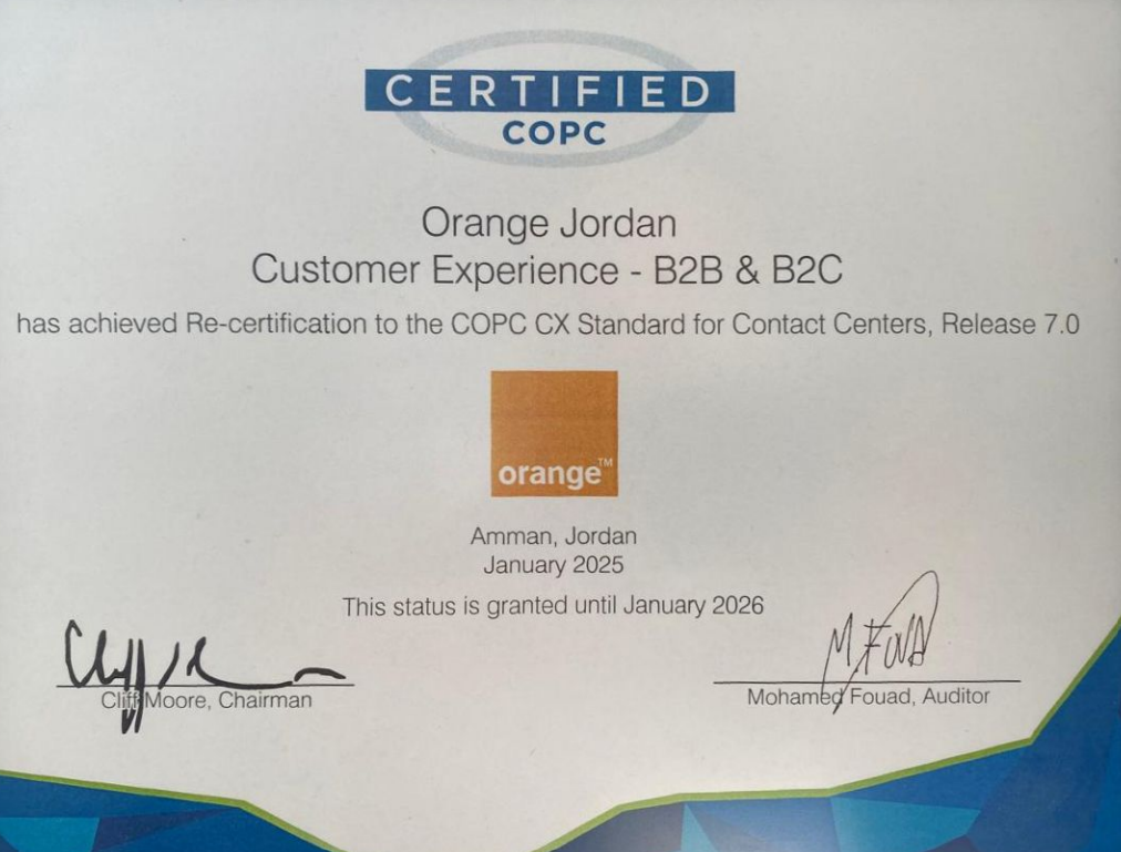 جددت أورنج الأردن شهادة COPC العالمية للعام 2025، وللسنة السادسة على التوالي، تأكيداً على ريادتها وتميّزها في تجربة الزبائن. وتُعد هذه الشهادة العالمية المرموقة دليلاً على التزام الشركة المستمر بأعلى معايير الجودة في تقديم خدمات الزبائن، ما يضع الشركة في مصاف الشركات الرائدة على مستوى العالم في...