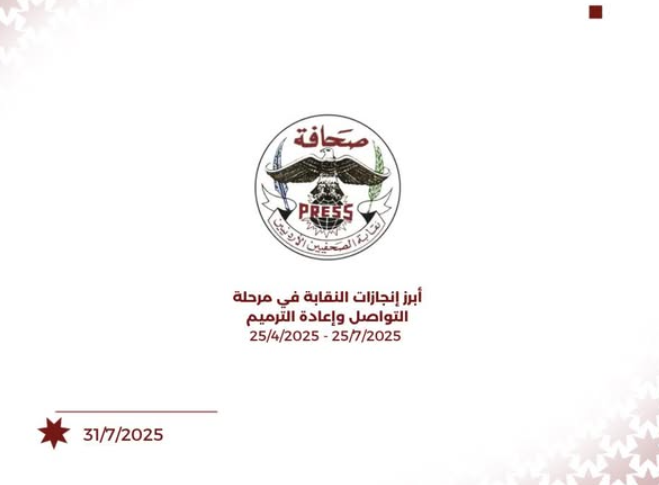 مجلس نقابة الصحفيين يعقد جلسة خاصة لاستعراض ملخص الإنجازات في مرحلة التواصل وإعادة الترميم”عقد مجلس نقابة الصحفيين الأردنيين، الأربعاء، جلسة خاصة خصصت لاستعراض ملخص الإنجازات التي تحققت خلال المرحلة الأولى من عمل المجلس تحت عنوان مرحلة التواصل وإعادة الترميم”.وجاءت الجلسة في إطار تقييم الأداء...