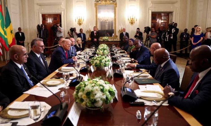 كعادته بإحراج ضيوفه، وتصدر المشهد وحتى إثارة الجدل والاستعراض الإعلامي، قام الرئيس الأمريكي دونالد ترامب بمقاطعة الرئيس الموريتاني محمد ولد الشيخ الغزواني لإسكاته، وطالب رئيس غينيا بيساو عمر سيسوكو إمبالو بذكر اسمه وبلده، في حين أبدى اندهاشه من طلاقة حديث الرئيس الليبيري جوزيف بواكاي باللغة...