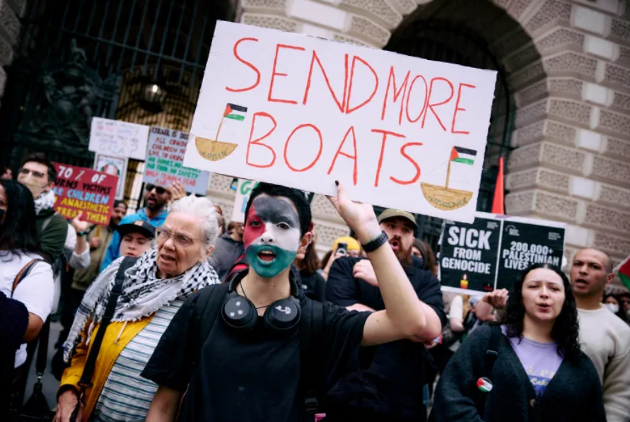 نظم مناصرون للقضية الفلسطينية، اليوم الاثنين، وقفات احتجاجية في العاصمة البريطانية لندن، والعاصمة الألمانية برلين، دعما للسفينة مادلين التي اختطفتها إسرائيل قرب قطاع غزة.فقد أقام بريطانيون وقفة احتجاجية أمام مقر وزارة الخارجية، وذلك بعد ساعات من سيطرة قوات الاحتلال الإسرائيلي على السفينة مادلين...