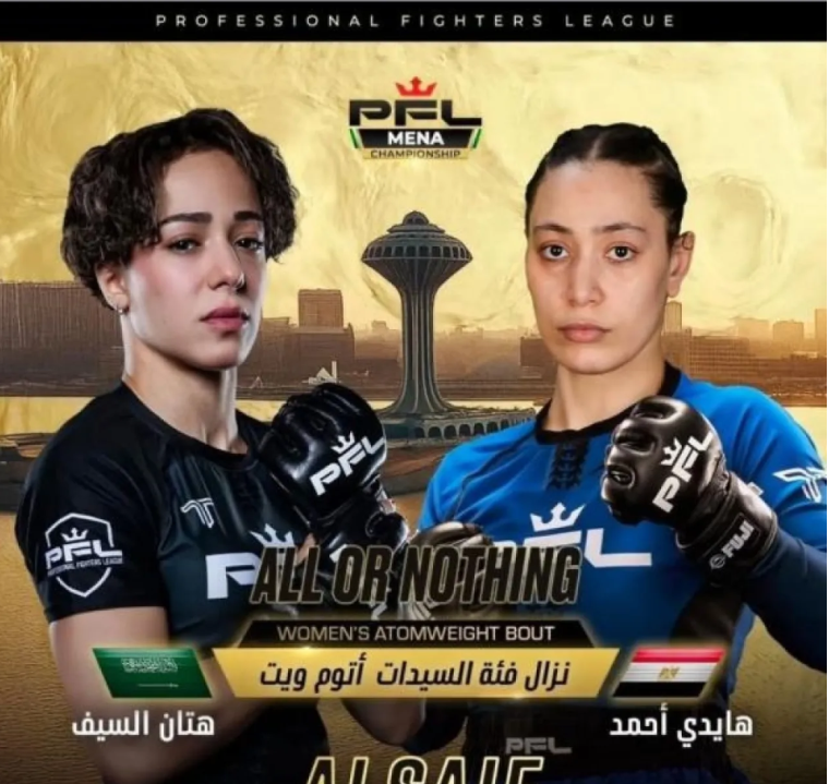 تتجه الأنظار إلى مدينة الخبر بالمملكة العربية السعودية، حيث تستضيف منافسات النزالات النهائية لبطولة دوري المقاتلين المحترفين لمنطقة الشرق الأوسط وشمال أفريقيا (PFL MENA)، والتي تشهد مشاركة بارزة للمقاتلة المصرية هايدي أحمد، بطلة مصر في الملاكمة ست مرات، التي تستعد لمواجهة المقاتلة السعودية هتان...