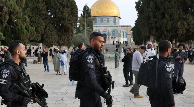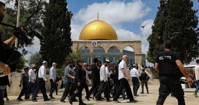 اقتحم مستوطنون ، الخميس باحات المسجد الأقصى المبارك في مدينة القدس المحتلة، بحماية شرطة الاحتلال الإسرائيلي.وأفادت مصادر فلسطينية، بأن عشرات المستوطنين اقتحموا المسجد الأقصى على شكل مجموعات، ونفذوا جولات استفزازية في باحاته، وأدوا طقوسا تلمودية، بحماية قوات الاحتلال.